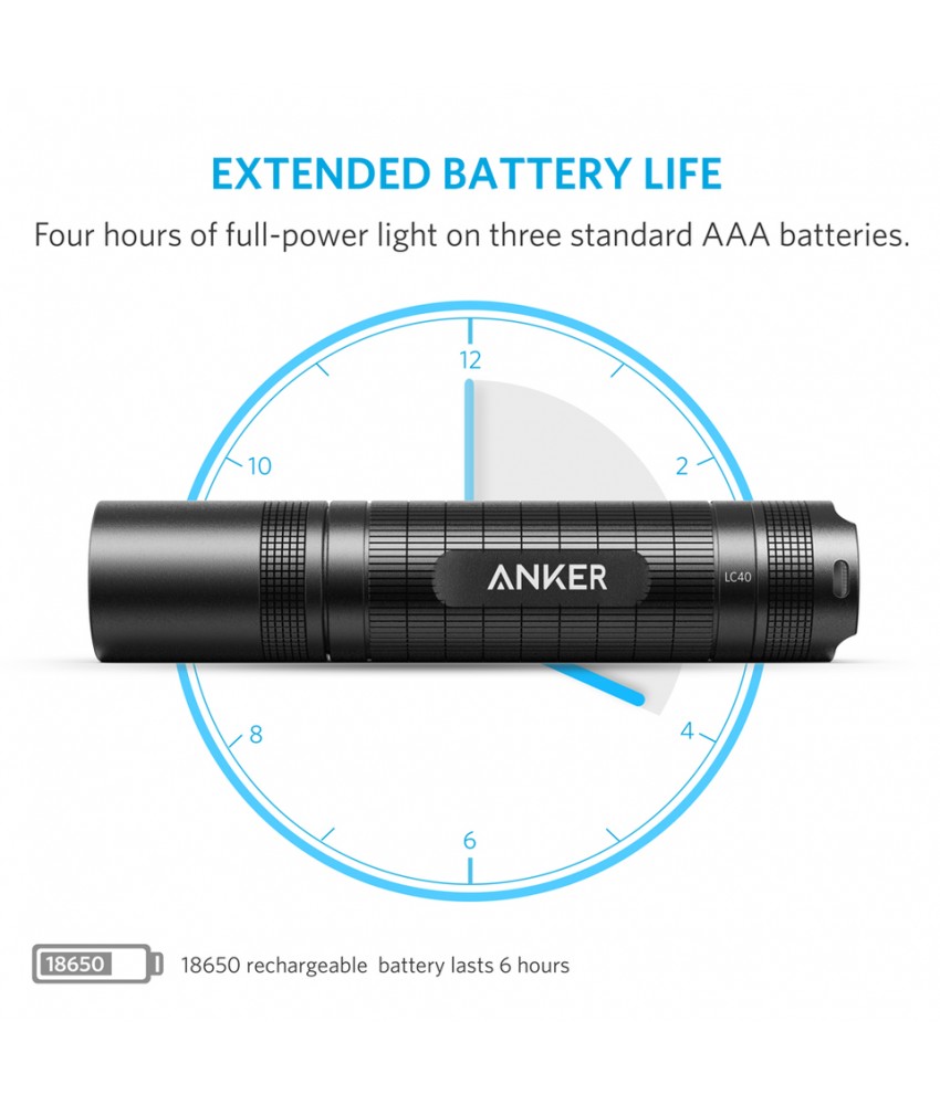 مصباح أنكر هو نوعية ممتازة، يعمل لفترة طويلة عند استخدام نوعية ممتازة من البطاريات، حيث أنه يدوم لفترة تصل إلى 6 ساعات